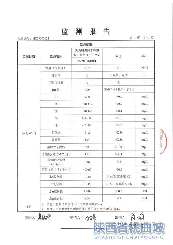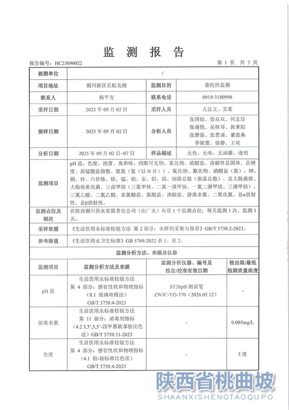 出厂水月检报告-2025-09