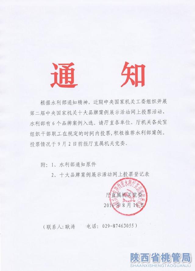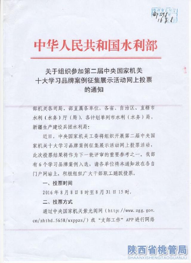 根据水利部及厅直属机关党委通知精神,现在全局范围内组织开展第二届中央国家机关十大学习品牌案例征集展示活动网上投票活动(其中水利部6个学习品牌案例入选)。请各单位、各部门高度重视,积极组织职工参与投票。有关事项安排如下: