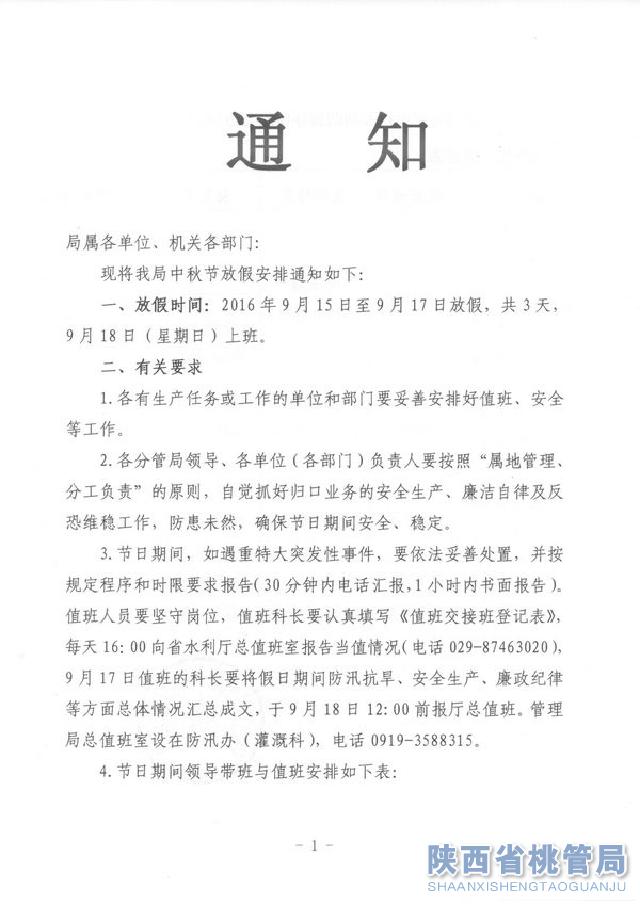 关于中秋节放假的通知