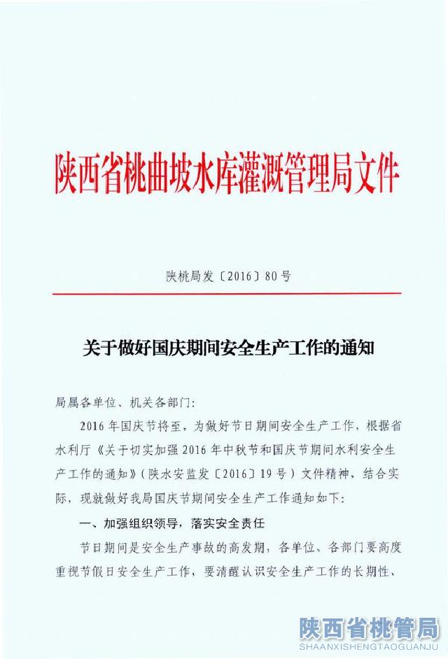 关于做好国庆节期间安全生产工作的通知