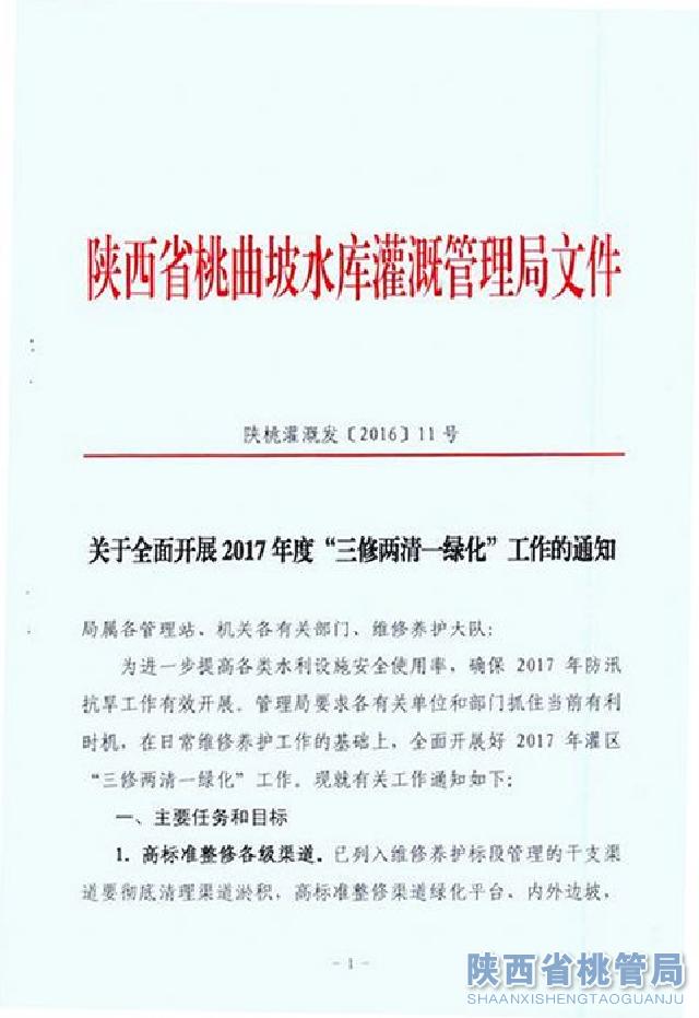 关于全面开展2017年度“三修两清一绿化”工作的通知