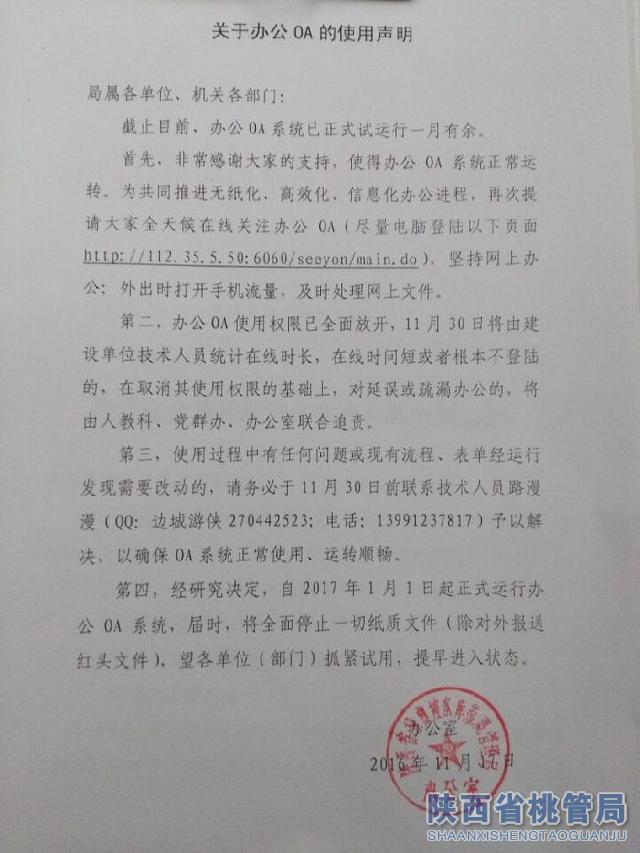 关于办公OA的使用声明
