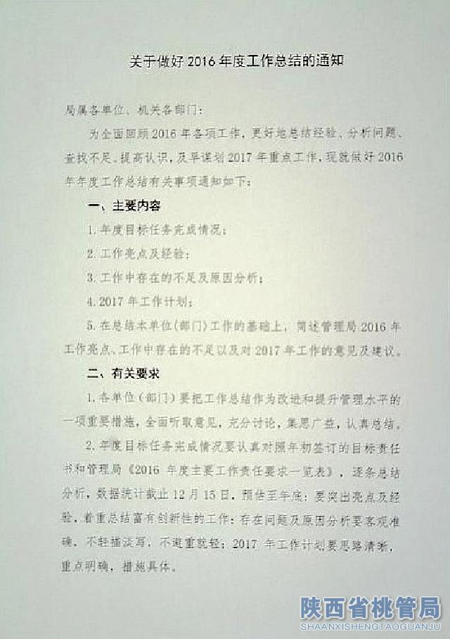 关于做好2016年度工作总结的通知