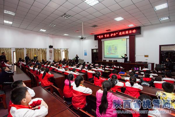 水政执法人员和志愿者统一着执法服装、工作服,通过设立街头咨询台、悬挂水法宣传横幅、发放宣传资料,向社会民众介绍水资源形势,宣传水资源保护、涉水执法、生活用水常识,解释水质认识误区等。在铜川市金谟小学开展了“爱水 节水 护水”进校园活动,通过摆放展板、发放宣传资料及印有节水护水宣传标识的笔记本,吸引学生上前主动了解涉水知识;在该校阶梯教室,志愿者为100多名学生现场PPT授课,从“节水护水保护水源”和“水加工和制造”两个方面教育小学生树立保护环境、珍惜水资源意识,培养节水护水习惯,以实际行动节约保护水资源。